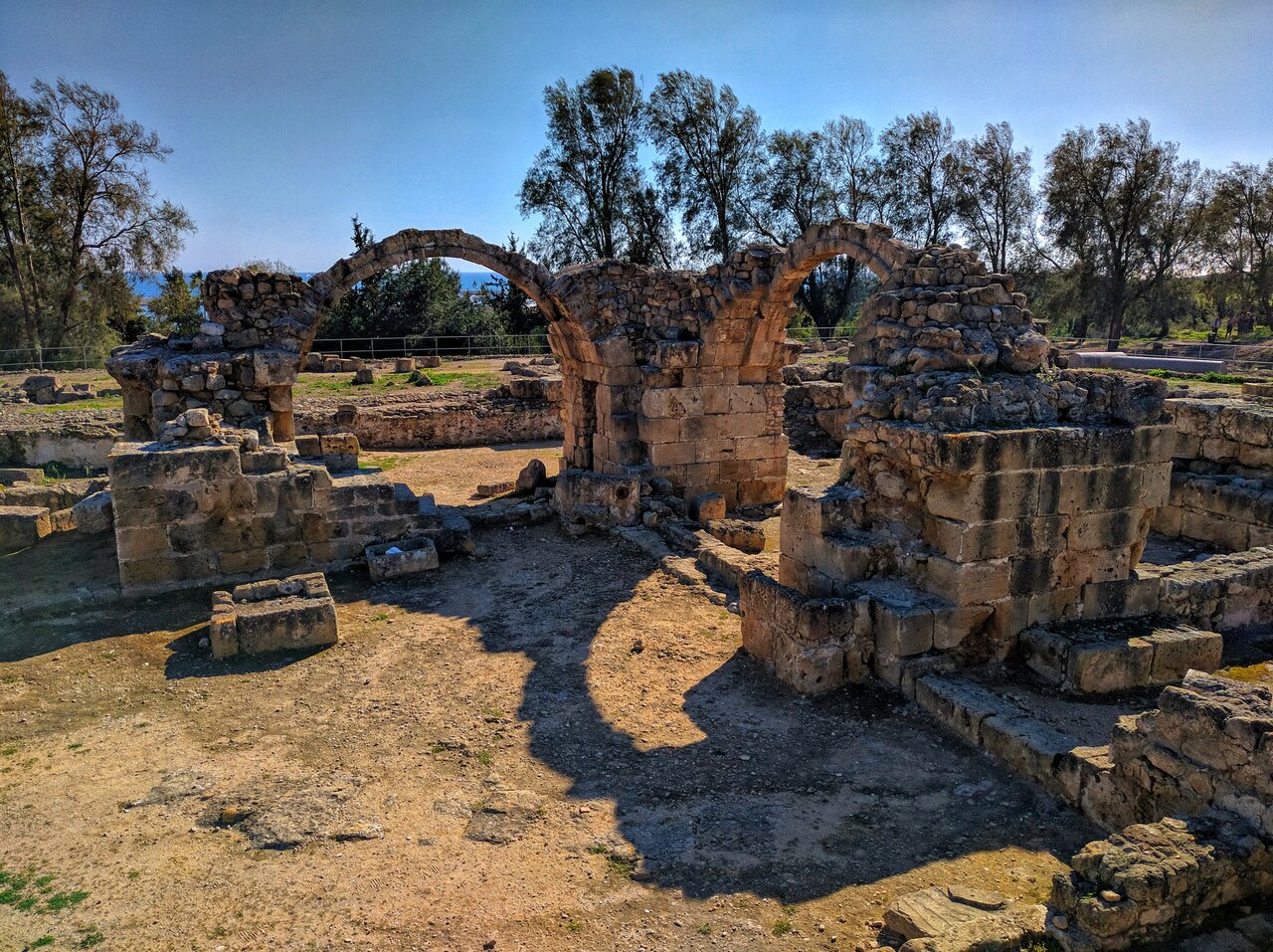 Базилика Хрисополитисса.Когда-то в этом удивительном месте возвышалось одно из крупнейших религиозных сооружений Пафоса. Все что от него осталось – это развалины христианской базилики IV века, по которым можно представить размеры и великолепие изначального сооружения, разрушенного в период арабских набегов в 653 году.