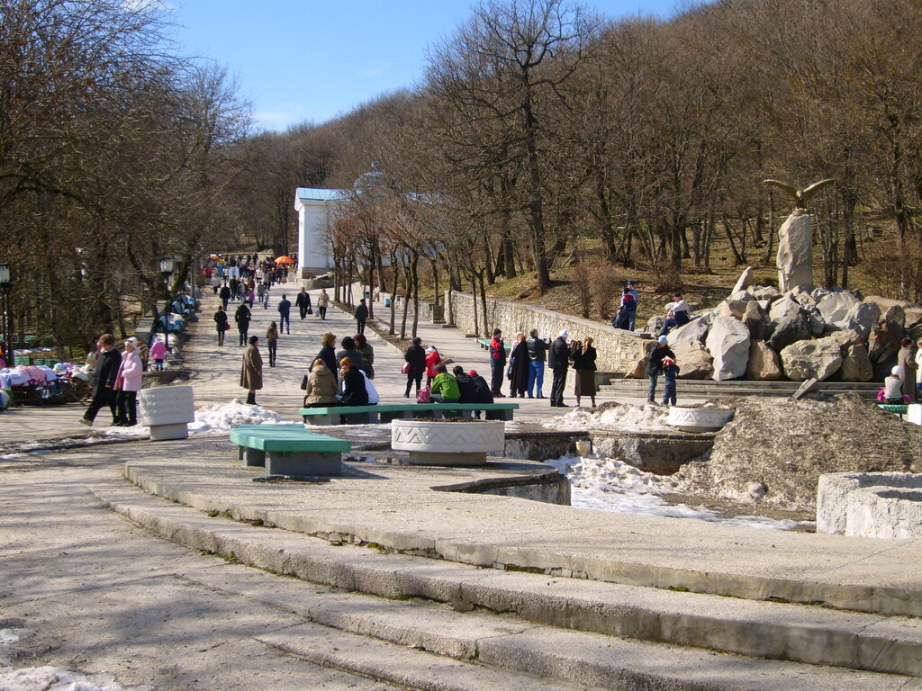 Каскадная лестница.На одном из склонов Железной горы раскинулся заложенный в 1825 году железноводский Курортный парк – отличное место для отдыха, благоустроенное, но при этом сохранившее естественную природную красоту. Когда-то этот парк, тогда еще носивший имя «Казенный сад», был центром культурной жизни Железноводска. По склонам Железной прогуливались Пушкин, Лермонтов, Толстой и многие другие известные личности, посещавшие курортный городок. Сюда приходили, чтобы прогуляться в приятной компании по тенистым дорожкам, подышать чистейшим горным воздухом, напиться целебной минеральной воды из источников, вкусно отобедать и даже послушать концерт.