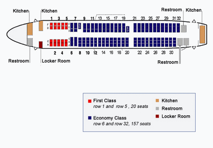 1-4 ряды относятся к бизнес-классу. 1-4 ряды имеют те же недостатки, как первый и последний ряды бизнес-класса варианта 1.