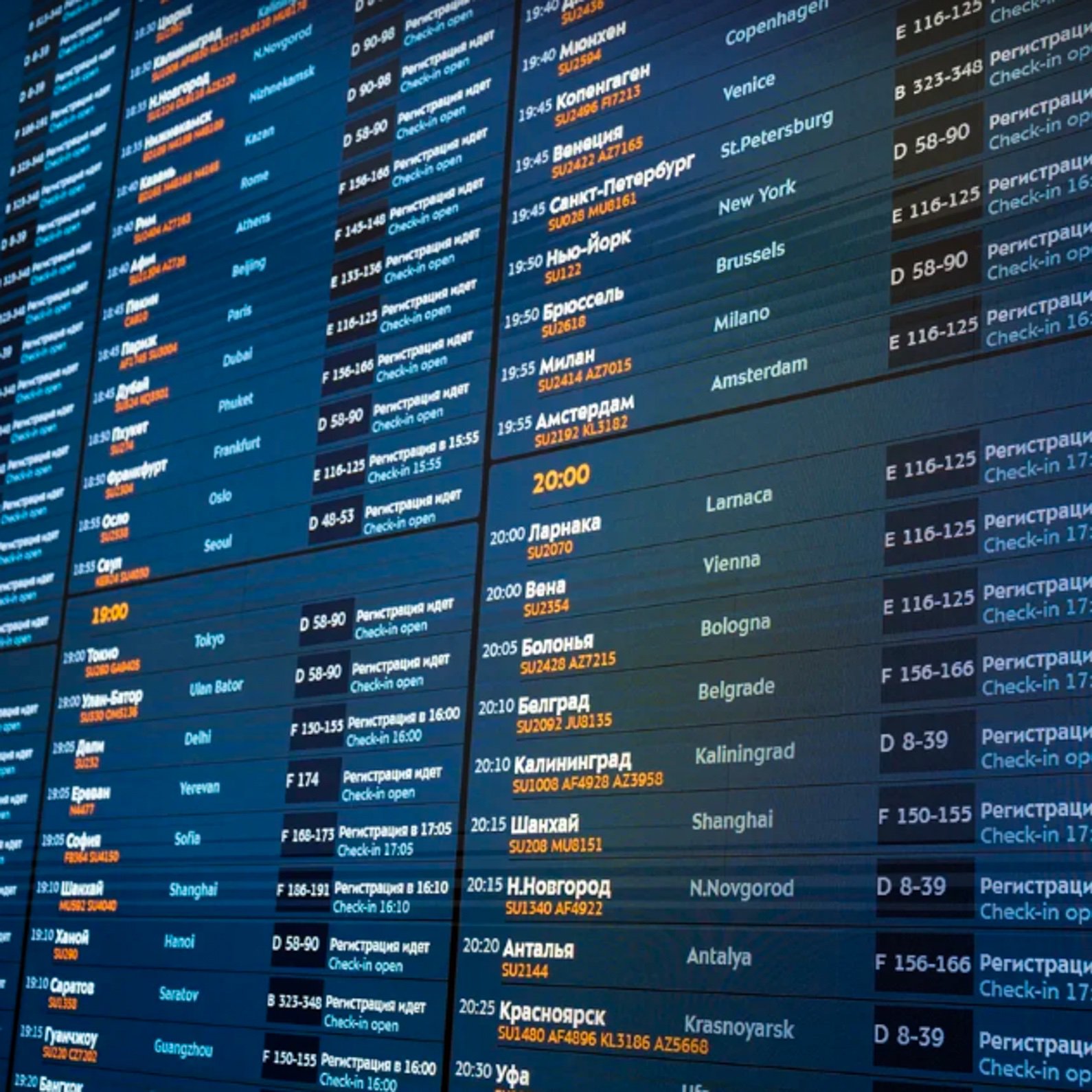 - Крупнейшее в России центральное табло рейсов (68,5×6,5м) в зоне регистрации