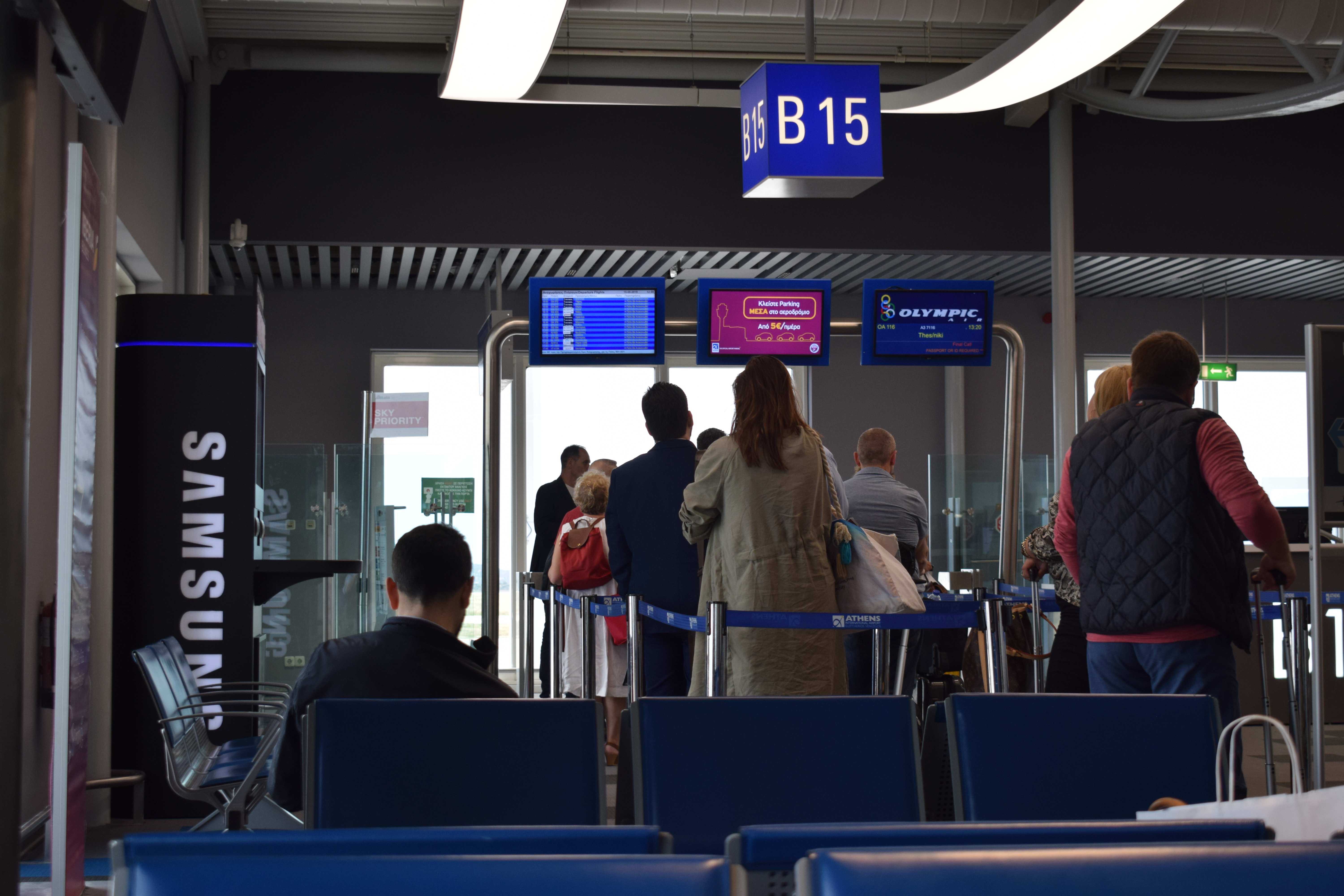 Несмотря на то, что досмотр производится уже у гейта, посадочный талон проверяют раньше, и без него в зону вылетов не пройти.