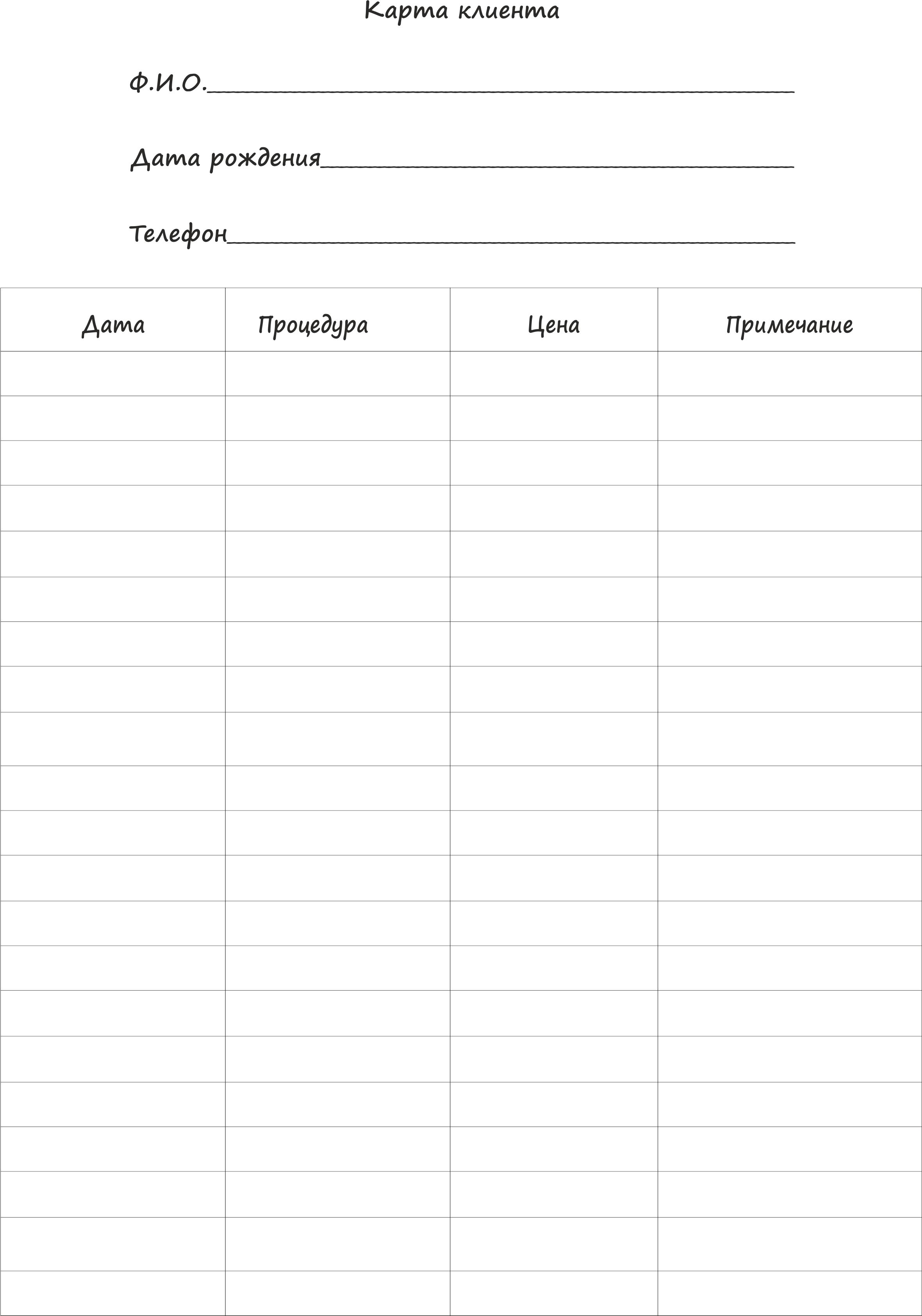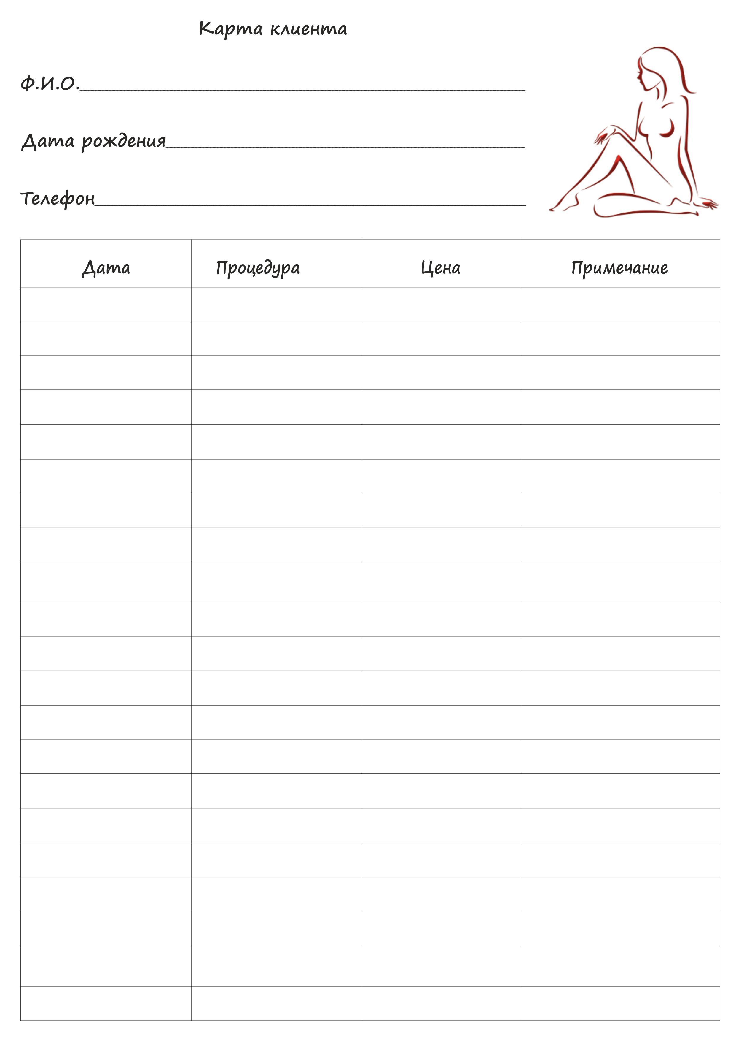 Карта клиента косметолога | Образец карты пациента косметологического кабинета