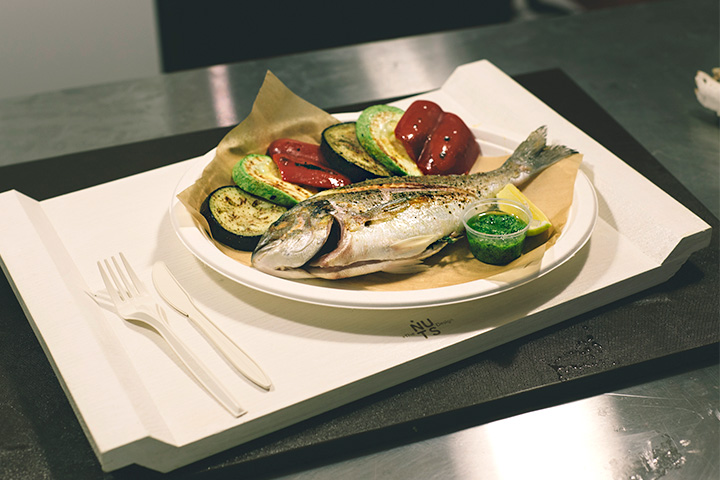 Тренируйся, ешь вне дома. Съешьте сюда салат из барабули, и это именно так, целая кефаль, теперь только голова, позвоночник и хвост, поддерживающие салат.