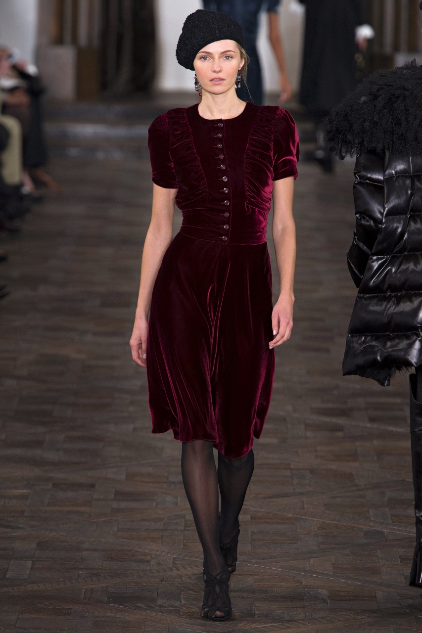 Немного дальше бархатных курточек пошел Lacoste, который представил теплое бархатное платье и юбку, которая идет в дуете с бархатной курткой. Однако во всех образах придерживались сдержанного стиля, используя только темные оттенки.