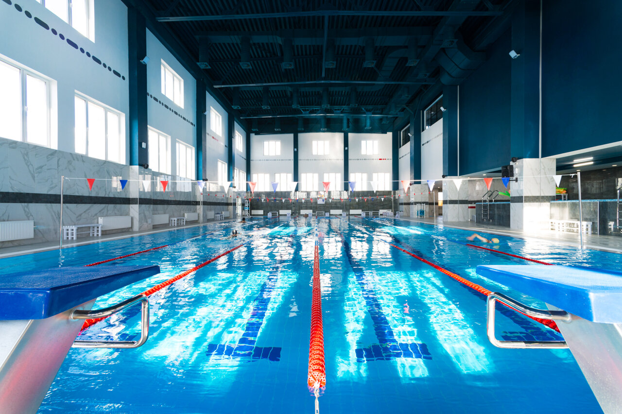 В большом 50 метровом бассейне можно отлично тренироваться и устанавливать личные рекорды.