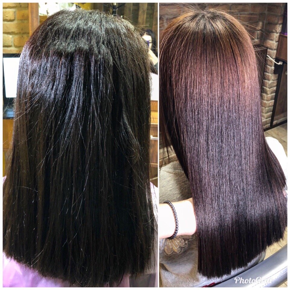 к. после него, в отличие от кератинового выпрямления, исчезнет желтый оттенок волос, кроме этого, после него можно осветлять волосы, а кератиновое выпрямление уже не даст этого сделать.
