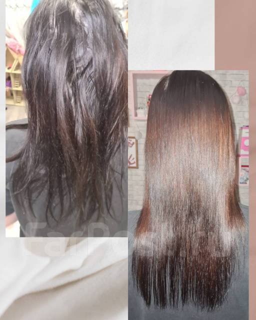 *фото до и после процедурыПроцедура немного похожа на кератиновое выпрямление, которое я когда-то делала, но вот отличия: