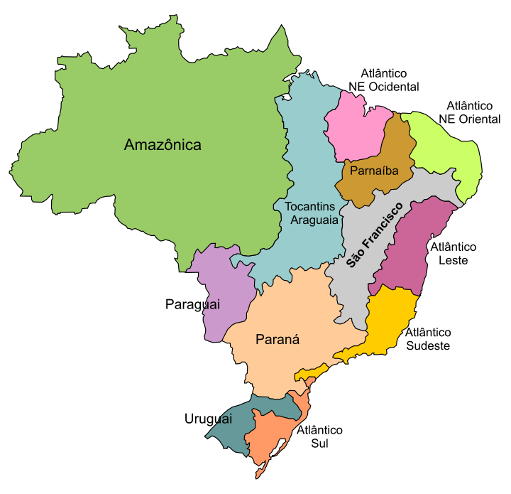 Амазонка (река Амазонка), Атлантический океан, Байя-де-Марахо, Байя-де-Паранагуа, Байя-де-Санта-Роса, Байя-де-Сан-Маркос, Байя-ду-Виейра-Гранди, Лаго-де-Собрадинью, Лагоа Мирим, Лагоа-дос-Патос, Тихий океан , Рио-Арагуайя, Рио-Гранде, Рио-Хуруэна, Рио-Мадейра, Рио-Негро, Рио-Парагвай, Рио-Парана, Рио-Паранаиба, Рио-Пурус, Рио-Сан-Франциско, Рио-Тапахос, Рио-Телес-Пирес, Рио-Токантинс, Рио-Уругвай, Рио-Шингу, Серра-ду Эспиньяко, Серра-ду-Тумукумаке (горы Тумук-Хумак), Серра-дус-Паресис.