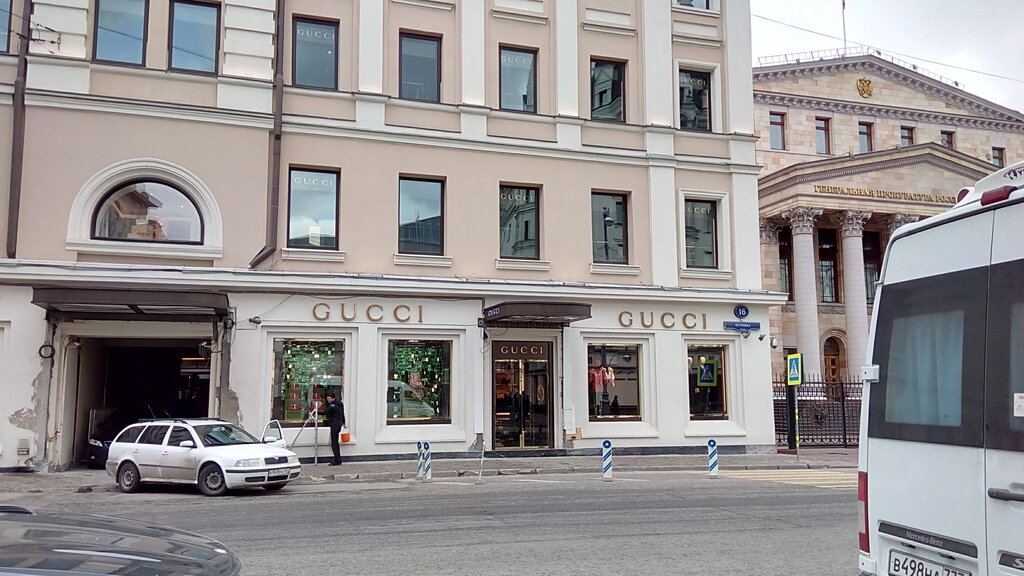 Флагманский бутик Gucci на Петровке – один из крупнейших в мире. Он расположен в отреставрированном четырехэтажном здании, высота потолков которого достигает четырех метров, фасад здания же представляет собой панорамную витрину. Бутик Gucci, в свою очередь, занимает три этажа общей площадью более 1000 квадратных метров, на которых представлены коллекции мужской и женской одежды, детские коллекции, чемоданы, сумки, аксессуары, обувь, изделия из шелка, часы, ювелирные изделия, парфюмерия и косметика. В бутике можно воспользоваться уникальной возможностью сделать индивидуальный заказ на мужскую обувь или женскую сумку. Наряду с этим доступна услуга пошива мужских костюмов по индивидуальным меркам, на выбор будут предложены эксклюзивные ткани, отделка и другие детали. Отдельные залы предусмотрены для VIP клиентов.