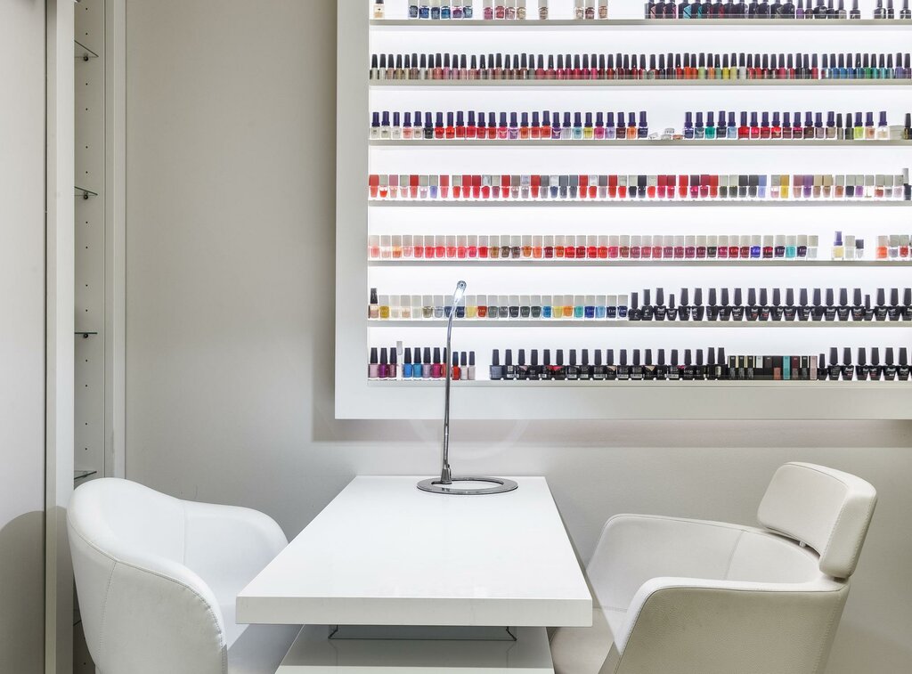 Открытая стойка регистрации, бар и даже размещение стульев в зоне педикюра — все это способствует социальной атмосфере Say No Mo.