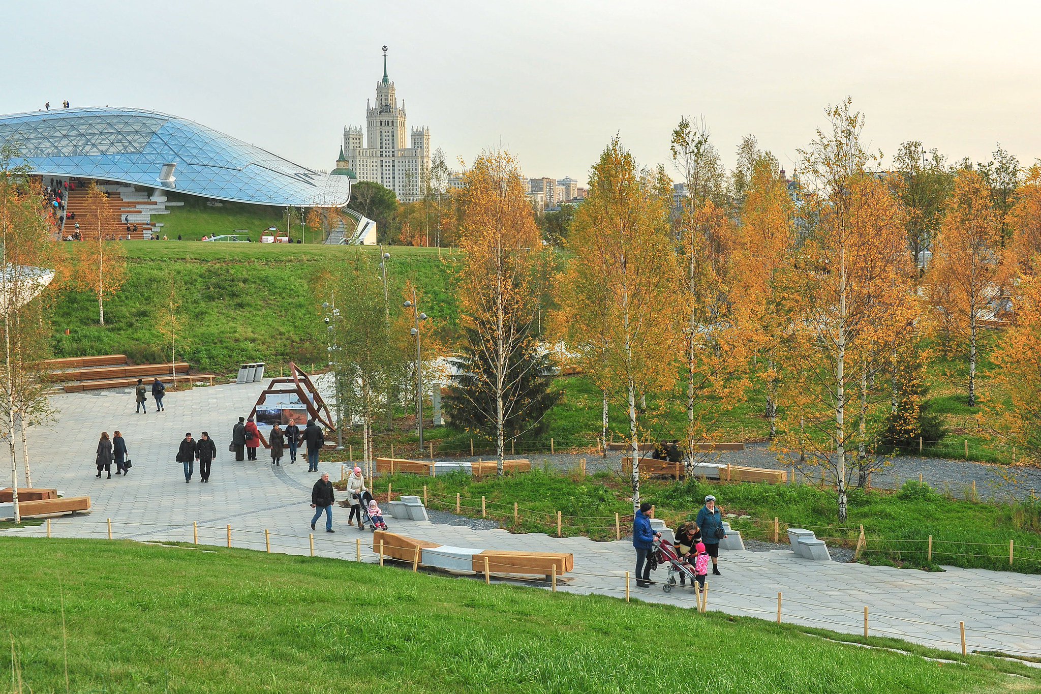Посадки появились слишком недавно, чтобы быть более чем умеренно интересными, но по мере их развития они имеют большие перспективы. Другие достопримечательности включают популярную консольную площадку с видом на реку, холм, увенчанный теплицей, и далекие виды на собор Василия Блаженного и башни Кремля с парком на переднем плане.