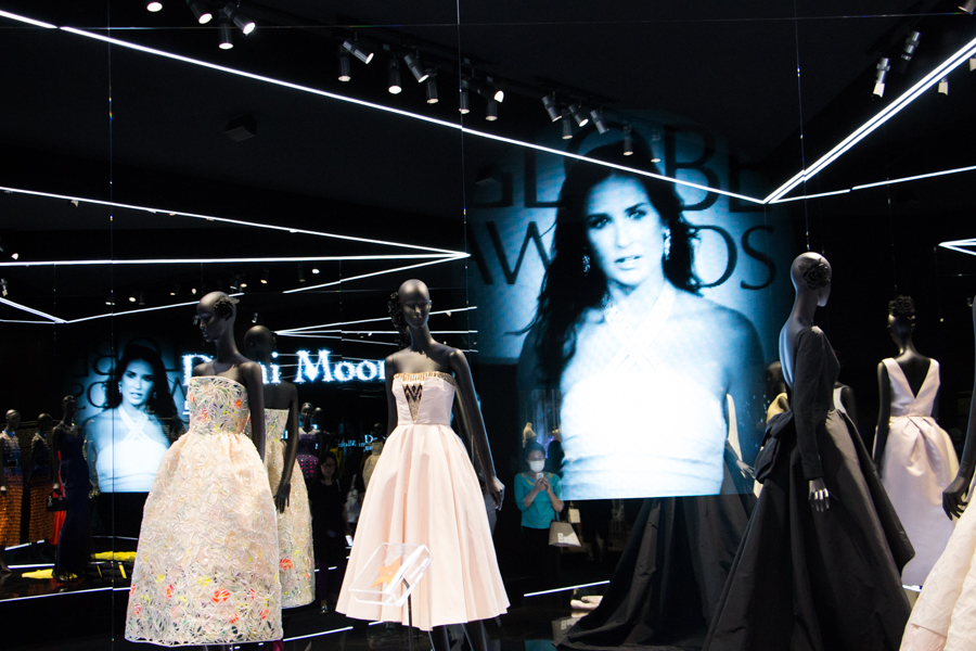 Покупатели, входящие с Красной площади, сталкиваются с большой видеостеной, транслирующей последние изображения с подиумов, в окружении демонстраций сумок и небольших кожаных изделий, в том числе последней коллекции Dior — сумки My Dior.