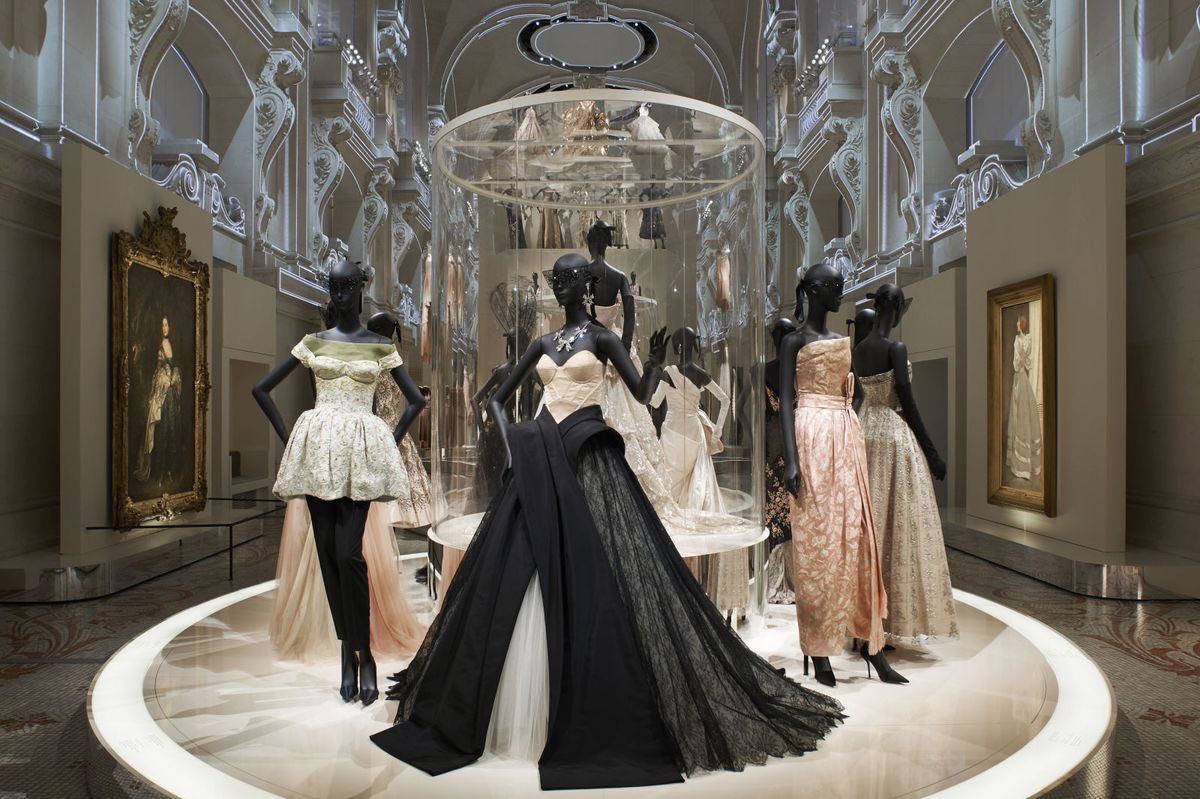 Изысканные украшения Виктуар де Кастеллан находятся в соседнем зале, который отражает причудливый интерьер ювелирного дома Dior на парижской Вандомской площади с жемчужно-серыми стенами, принтами в виде пантер и шарами на крошечных стульях.
