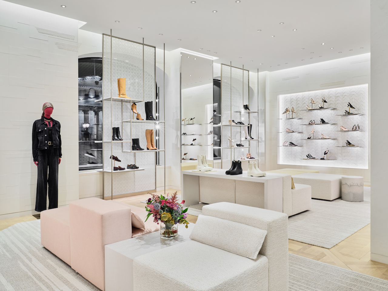 Новый трехуровневый магазин вдохновлен флагманом Dior на авеню Монтень в Париже, где сочетаются элементы 18-го века и современные.