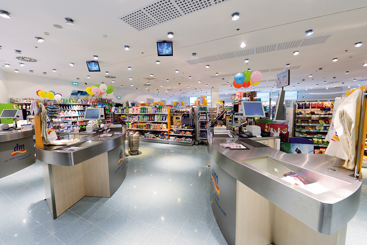 Для Drogerie, как и для «продовольственных» дискаунтеров, 80 % оборота обеспечивают постоянные покупатели, проживающие в радиусе 1-2 кварталов от магазина. Сеть должна быть достаточно плотной, а магазины — небольшими. 5 минут ходьбы — это максимум усилий, каких можно требовать от местного жителя, приходящего за своей повседневной традиционной покупкой.