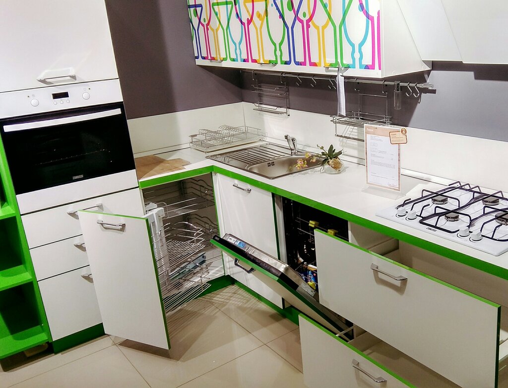 - Экономия времени. Не придётся по отдельности выбирать аксессуары и бытовую технику. Всё можно купить в одном месте, удачно комплектуя с гарнитуром.