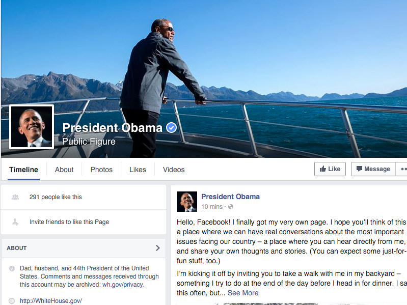 Hello, Facebook! I finally got my very own page. I hope you’ll think of this as a place where we can have real conversations about the most important issues facing our country – a place where you can hear directly from me, and share your own thoughts and stories.