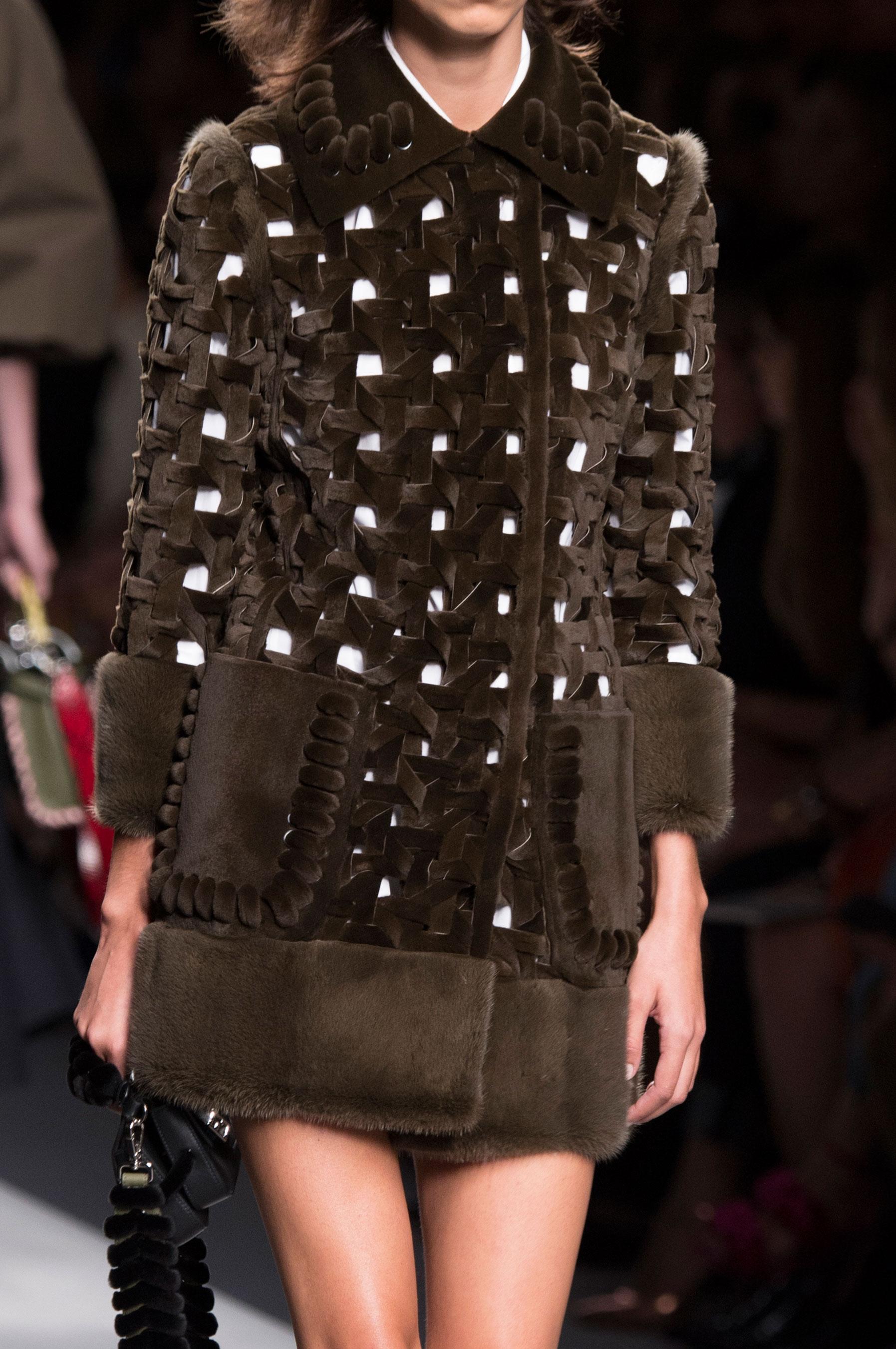 Fendi давно признала, что эксклюзивность является ключевым фактором роскоши. Они демонстрируют это снова и снова, создавая меховые коллекции с необычайной детализацией и изысканным дизайном в технике интарсия, выполненные вручную высококвалифицированными мастерами. Каждый сезон только ограниченный ассортимент этих уникальных носимых произведений искусства может быть произведен и предоставлен для покупки, что повысит их престиж и повысит их статус роскоши.Осенью 2018 года прогулочное пальто из норки оливкового цвета было дополнено черной норковой окантовкой вокруг воротника и клетчатой шерстяной подкладкой, которая гармонировала с юбкой.