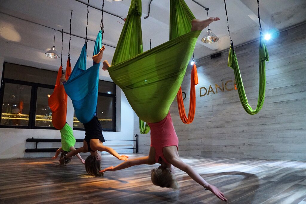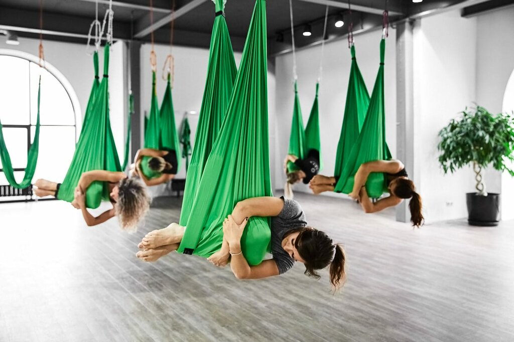 У этого вида йоги есть еще одно название – менее благозвучное: антигравити йога. Суть ее в том, что занятия проходят не на полу и не на ковриках – а на подвешенных к потолку гамаках из плотной ткани.