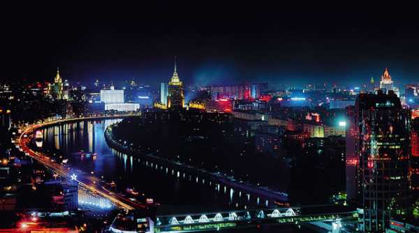 Ночной вид на Дом Правительства и гостиницу «Украина» (снято из «Города столиц»)