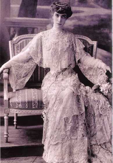 Маркиза Луиза Казати любила одежду Мариано Фортуни и Поля Пуаре. Одно из платьев 1912 года, о котором сейчас пойдёт речь, было воссоздано в 2011 маркой Marchesa. Типичная для Пуаре туника в форме «абажура» поверх узкой и длинной юбки, заканчивающейся на полу в виде веера.