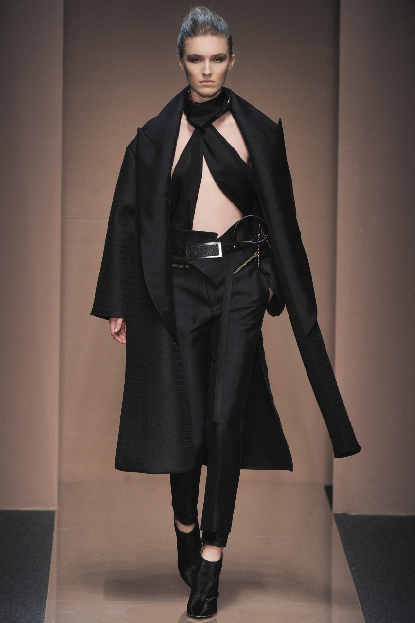 Если в моде объем, то почему он обязательно должен быть представлен накидкой? Многослойные вещи в их коллекции комбинировались из матовых и блестящих материалов, стильные детали повторялись в разных цветах, а меховой воротник в виде шикарного боа свободно свисал до самого низа куртки. Выглядело все это несколько напыщенно, но зато такие варианты отлично подходят для вечерних выходов в свет. Необычно, стильно и, заметьте, никакого гламура!