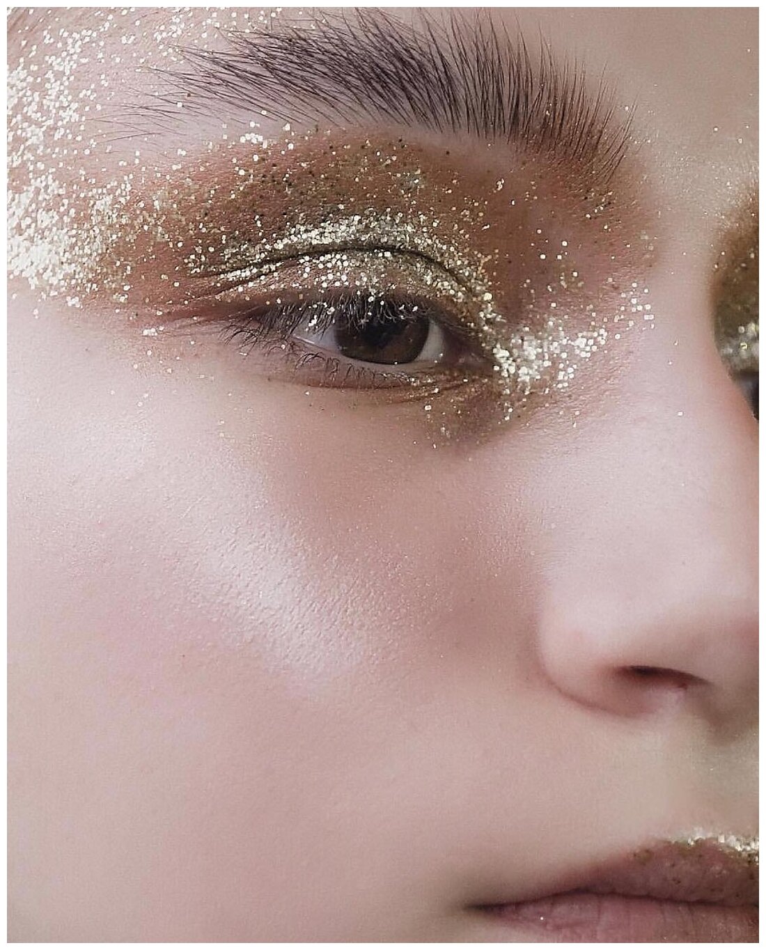 Использование блесток в макияже глаз стало популярно как в повседневной жизни, так и для особых случаев. Наносить глиттер можно на глаза, губы, скулы, тело, ногти и волосы.