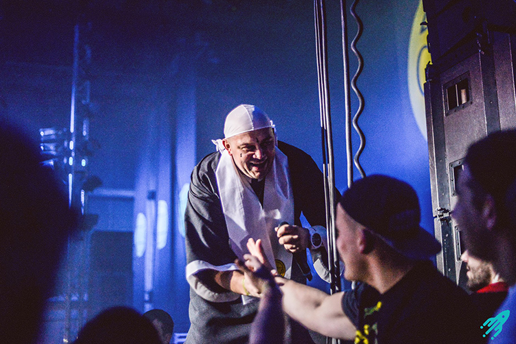 Луна — о хайпе, продюсерских ходах и «Грибах»Первым на сцене спустя еще полчаса ожиданий появляется Kyivstoner. Инстаграм-юморист облачен в рясу священника, на лице у него — нарисованные татуировки точь-в-точь как в заокеанских рэп-клипах. Первые ряды тут же начинают протягивать артисту подарки (какие — было не разглядеть, но легко предположить, что передают человеку по прозвищу Киевский Укурыш). Тот собирает дары в большой полиэтиленовый пакет с зиплоком. «Только без денег, пацыки, — произносит он. — Их нам уже орги дали». Все это происходит под сопровождение плейлиста любимых песен участников группы, в перерывах между которыми Kyivstoner веселит публику своими фирменными жаргонизмами из спальных районов Киева. А потом, скандируя фразу «Диджей, дай нам звук», на сцене появляются остальные.