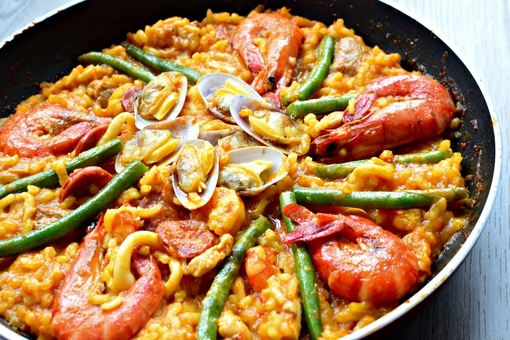 1. Паэлья Паэлья Валенсия / WikipediaПаэлья, пожалуй, самое известное испанское блюдо, с бесконечными разновидностями и версиями, которые создаются на протяжении многих лет. Это рисовое рагу происходит из Валенсийского сообщества, где его традиционно готовят с кроличьим мясом, курицей, а иногда даже улитками. Его готовят на раскаленных углях в специальной сковороде, называемой паэльера, и если все сделано правильно, образуется самая вкусная часть паэльи – socarrat, поджаренный и хрустящий рис, который сжигается по краям паэльеры.
