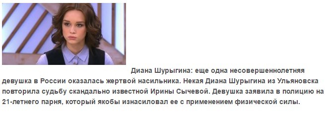 Диана Алексеевна Шурыгина — обычная русская девушка из города Ульяновска.Прославилась после скандального дела об изнасиловании.