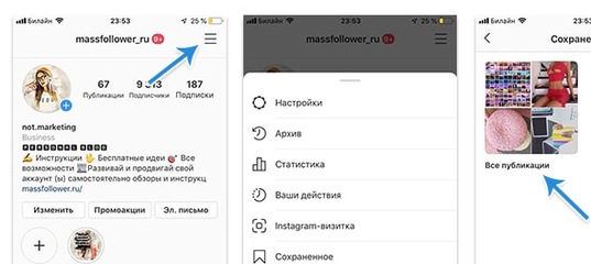 Шаг № 3: Чтобы просмотреть свои сохраненные сообщения, перейдите в свой профиль и нажмите 3 строки в правом верхнем углу.