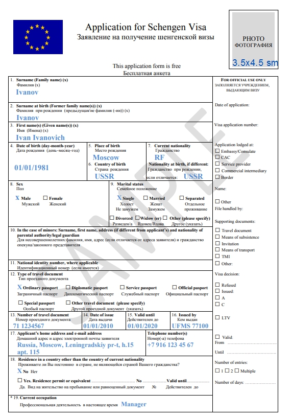 - Форма заявки , заполненная на английском или немецком языке. Форма должна быть полностью, честно и правильно заполнена, распечатана и подписана в конце.