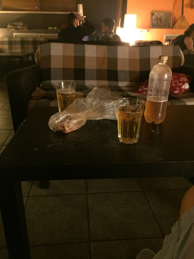 Короткие гости едят сухоочистительную пищу с вонючего стола, накрытого именинником, пьют сонные спиртные напитки, едят летальный шашлык, курят микромоторный кальян Захара. У всех на лицах косые улыбки и наблюдаются опоясывающие движения во всем теле. Ректальная компания прекрасно радуется происходящему и желает чаще проводить такие клинические встречи друзей. Они еще не знают, что эта отрубевидная встреча закончится плохим похмельем, но это их не волнует, потому что ничем не повторить эту любящую посиделку.»