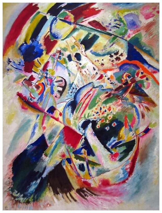 Кандинский основатель абстракции в живописи. Начинающий художник пишет дерзкие по форме и цвету пейзажи («Мурнау-Обермаркт», «Ущелье», «Времена года»). Его полотна совершенно разные – предметные «Крестоносцы» (1903) и совершенно абстрактные «Композиция VII».
