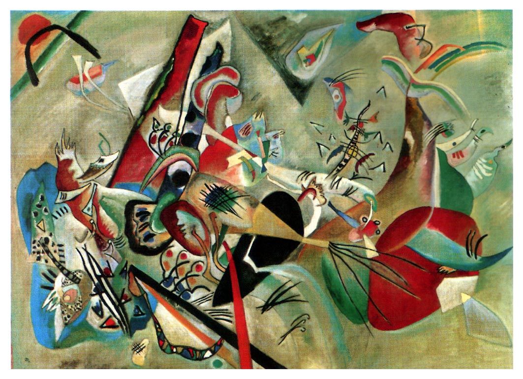 Художник, который не находит удовлетворения в простом изображении, пусть даже художественном, в своем стремлении выразить свою внутреннюю жизнь, не может не позавидовать той легкости, с которой музыка, самое нематериальное из современных искусств, достигает этой цели. Естественно, он стремится применить методы музыки к своему искусству.Отсюда и современное стремление к ритму в живописи, к математическому, абстрактному построению, к повторяющимся нотам цвета, к приведению цвета в движение.