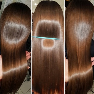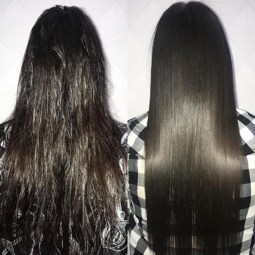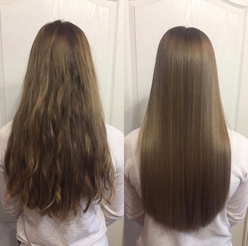 - Волосы после процедуры гладкие и приятные на ощупь.