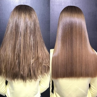 Используемые средства идеально выравнивают тонкий пористый волос, решив при этом ещё и проблему секущихся кончиков. Повреждённые участки структуры заполняются кератином, приглаживаются чешуйки. Большое количество витаминов и минералов способствуют быстрому восстановлению и стимулируют выработку собственного кератина.