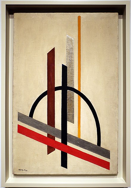Эль Лисицкий (1890–1941) получил образование архитектора и в 1920-х годах создал серию картин, основанных на его концепции « Проун », взятой из русского слова, означающего «новые формы искусства».Проун был средством работы, в котором основы формы, такие как пространство, пропорции, плоскостность и ритм, были объединены для работы при создании утилитарных объектов . Картины Лисицкого, такие как Proun 99 ( c. 1924), напоминали архитектурных планов , изображенных через прямолинейные формы и в приглушенных тонах. Лисицкий также много путешествовал в 1920-е годы и был важным распространителем теорий русского конструктивизма среди художников по всей Европе .
