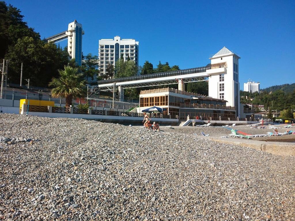 Основным пожалуй неудобством всего этого района является то, что тут очень близко к берегу проходит железная дорога. Поэтому наиболее благоприятным в этом плане является отрезок побережья от железнодорожного вокзала до речки Псоу, поскольку там железнодорожные пути находятся на максимальном отдалении от берега.