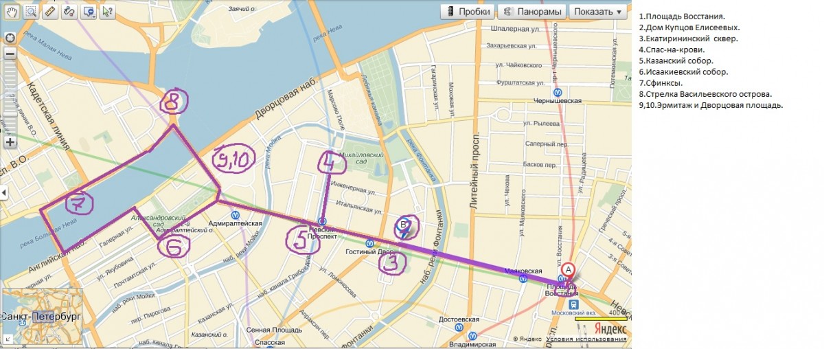 Отсчет прогулки начнем от станции метро «Гостиный двор» (выход на канал Грибоедова).
