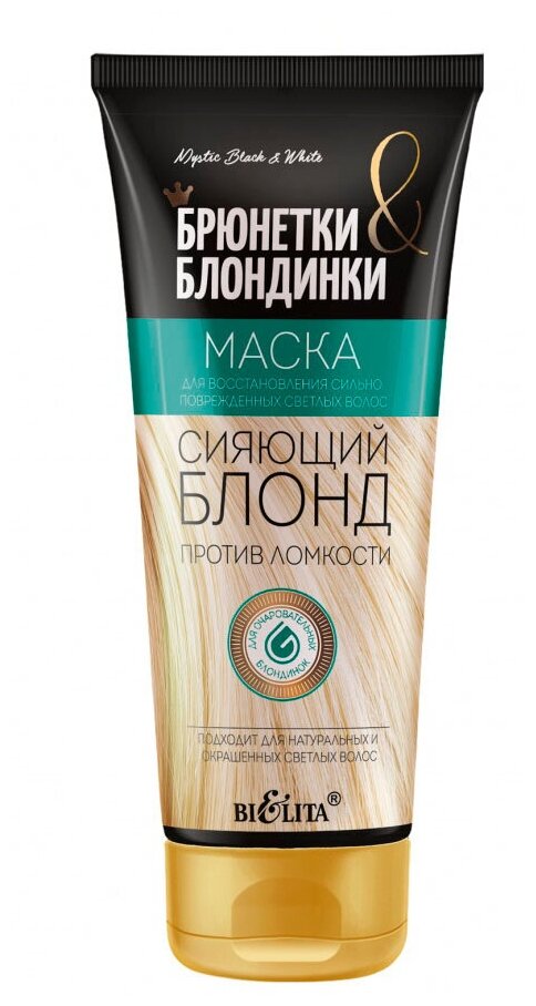 - Сияющий блонд от BELITA-VITEX. Спасительное восстановление для волос, ослабленных обесцвечиванием и окрашиванием. Маска укрепляет локоны, устраняет пористость и ломкость, возвращает здоровый блеск. В составе за это отвечают питательное масло ши, а также полезный экстракт ромашки. Средство рекомендуется использовать 1-2 раза в неделю.