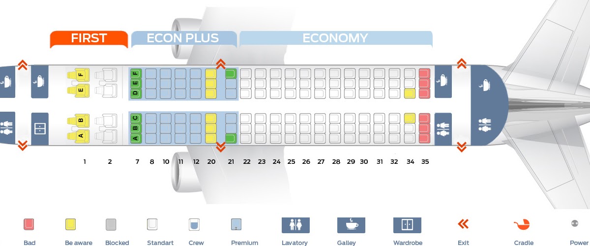 Схема салона и лучшие места в самолете Airbus A320 (Аэробус A320) Аэрофлот