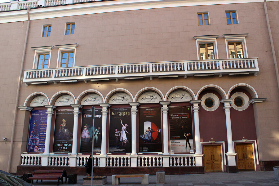 Еще один известный театр России, расположенный в Санкт-Петербурге. Внутри помещение украшено серебром, бархатом, золотом, лепниной, произведениями живописи, хрустальными изделиями и зеркалами. В наши дни на сцене проходит ежегодно около 200 постановок. Театр славится хорошим репертуаром.