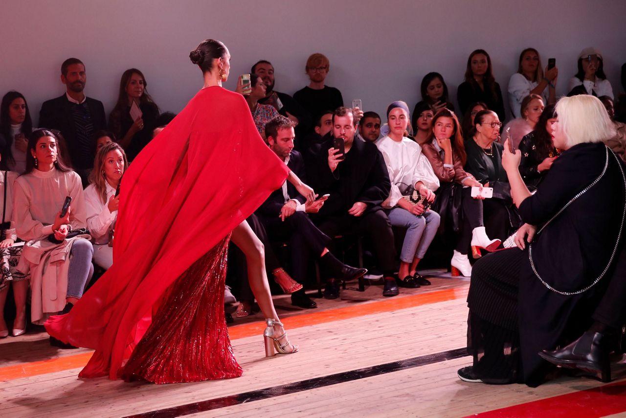 Модель позирует за кулисами перед показом коллекции Elie Saab Spring Summer 2019 в рамках Парижской недели моды 23 января 2019 года в Париже, Франция.(Фото Бенуа Тессье/Reuters)