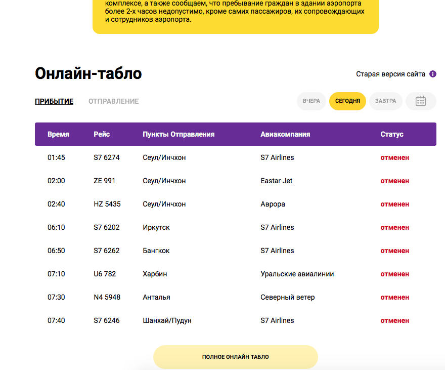 Расписание рейсов и поиск авиабилетов