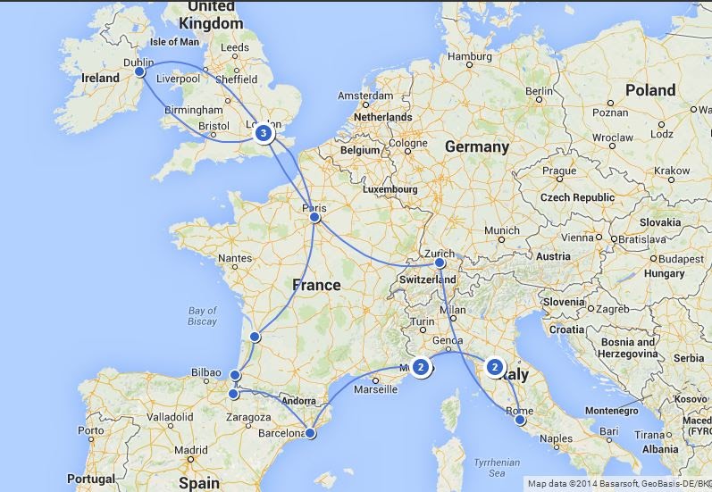На нашем сервисе вы можете узнать:- Расстояние и длительность перелета (сколько лететь из Париж в Барселона?)