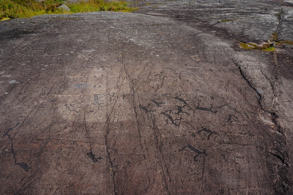 Наибольшее количество петроглифов обнаружено на скалистом плато Залавруга, которое находится над окружающими болотами