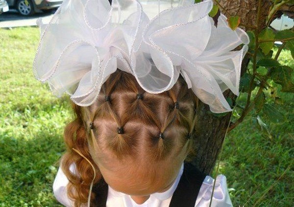 Для девочек на этом празднике одну из главных ролей играет прическа. Как правило, неотъемлемым ее атрибутом становится белый бант. Разберем подробней, какие прически с бантами для девочек существуют.