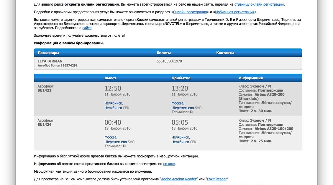 ΠΠ°ΠΊ ΠΏΡΠ°Π²ΠΈΠ»ΠΎ, Π²Ρ Π΄ΠΎΠ»ΠΆΠ½Ρ Π½Π΅ΠΌΠ΅Π΄Π»Π΅Π½Π½ΠΎ ΠΏΠΎΠ»ΡΡΠΈΡΡ ΡΠ»Π΅ΠΊΡΡΠΎΠ½Π½ΠΎΠ΅ ΠΏΠΈΡΡΠΌΠΎ Ρ ΠΊΠΎΠ΄ΠΎΠΌ ΠΏΠΎΠ΄ΡΠ²Π΅ΡΠΆΠ΄Π΅Π½ΠΈΡ ΠΈ Π΄ΡΡΠ³ΠΎΠ΅, ΠΎΡΠ΄Π΅Π»ΡΠ½ΠΎΠ΅ ΠΏΠΈΡΡΠΌΠΎ Ρ Π½ΠΎΠΌΠ΅ΡΠΎΠΌ Π±ΠΈΠ»Π΅ΡΠ° Π² ΡΠ΅ΡΠ΅Π½ΠΈΠ΅ 24 ΡΠ°ΡΠΎΠ² ΠΈΠ»ΠΈ ΠΎΠ±Π° Π² ΡΠΎΠΌ ΠΆΠ΅ ΠΏΠΈΡΡΠΌΠ΅.