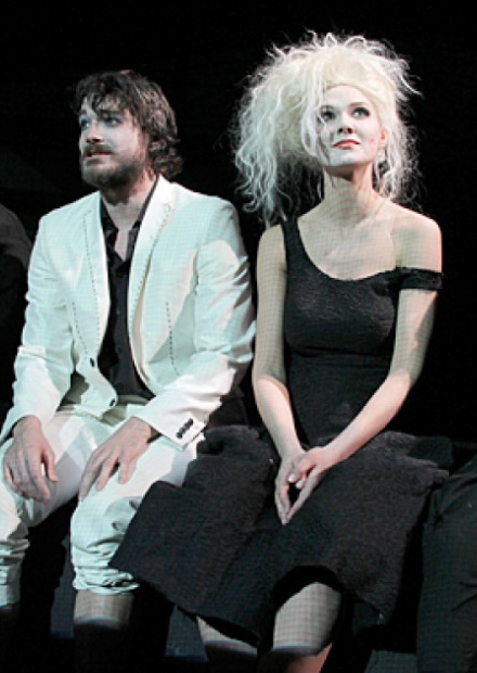 Фото: Юлия ТрегубНо самый удивительный эффект, максимально приближающий не только актёров, но и зрителей к ощущению опьянения, в спектакле создаёт музыка композитора Сергея Невского. Тонко продуманная мелодика здесь складывается в самый настоящий звон в ушах. Музыка исполняется вживую оркестром театра, который размещается не в оркестровой яме, а в ложах зрительного зала сзади и по бокам, что создаёт эффект объёмного звука, и кажется, будто в голове действительно что-то гудит.